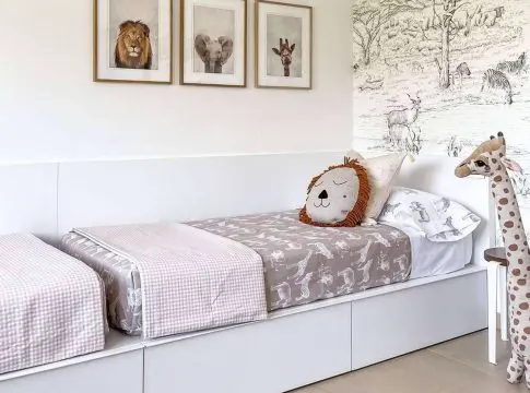 Para que los dormitorios de los niños y niñas de la casa tengan armonía es necesario pintar las paredes con tonalidades que combinen con los elementos de la colección Safari. Por último, para que los niños tengan un descanso placentero, no hay que pasar por alto incorporar una cama confortable.