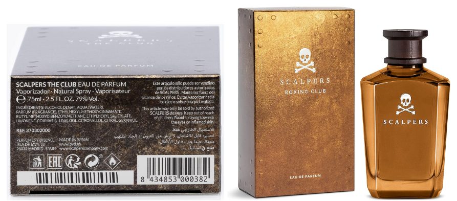 Scalpers Boxing Club es descrito como un perfume ideal para el hombre seductor, masculino y elegante. El perfume está disponible en presentaciones de 75 ml y 125 ml; su precio en Amazon es de 40,14 euros en su presentación de 75 ml.