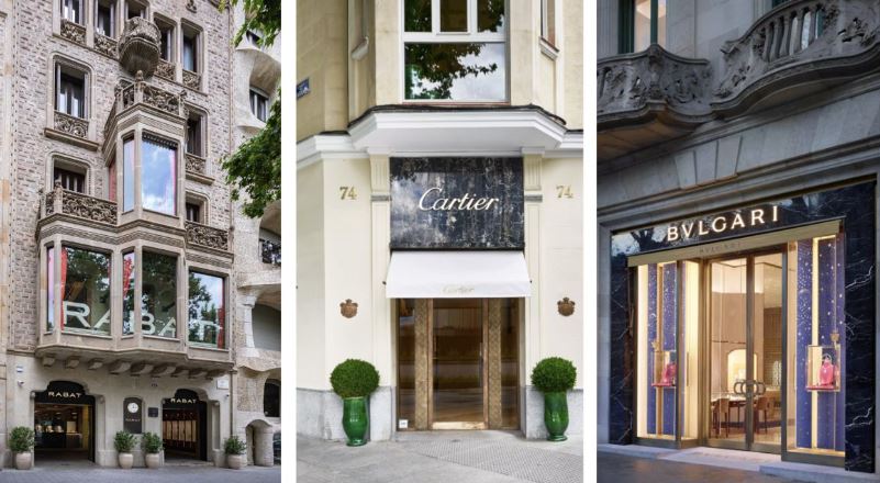 En la avenida de lujo de la capital catalana han preparado esta campaña compañías de tradición joyera, como es Rabat. Desde su flagship, un edificio modernista de seis plantas junto a La Pedrera, la empresa se distingue por una estrategia de excelencia y fidelización del cliente nacional que busca personalización en joyas o relojería de grandes marcas.