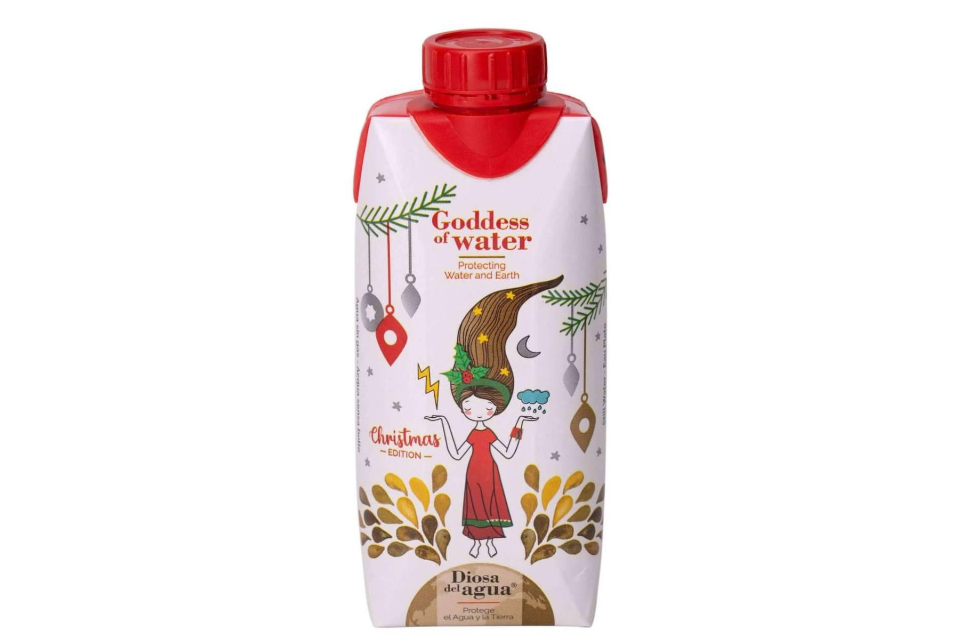 El brick de agua edición Navidad de La Diosa del Agua es una apuesta por la sostenibilidad y el diseño. Se trata de un cómodo envase de cartón que protege el agua de cualquier elemento natural exterior, garantizando su pureza y conservándola fresca durante más tiempo.