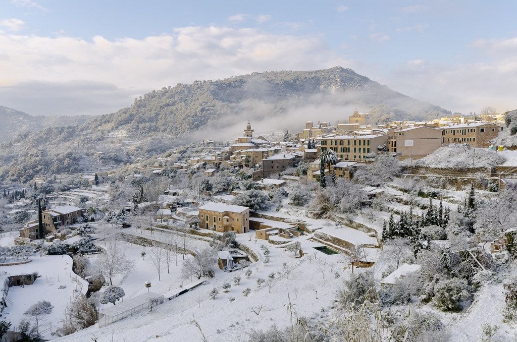 Ubicado a tan solo 20 kilómetros de Mallorca, Valldemossa se presenta como uno de los pueblos con nieve más hermosos de España. El acceso a este encantador destino desde la isla es un viaje cautivador, ofreciendo paisajes de gran belleza a lo largo del trayecto.