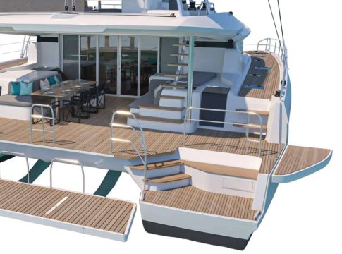 Completamente expuesta al mar, la bañera de popa del Lagoon 60 brinda un espacio de libertad sin igual. El ingenioso sistema de apertura de sus balcones proporciona un acceso instantáneo a la zona de baño. Diseñada para convertirse en el área favorita, la bañera de popa cuenta con escalones en ángulo que garantizan un acceso fácil y seguro.