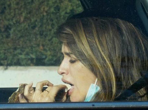 Ajena a la presencia de un avispado paparazzi en el lugar, Penélope -en la parte de atrás de un vehículo con el que hizo varios recados por la capital- degustó unas galletas con las que calmar el hambre inevitable que nos da a todos entre horas.