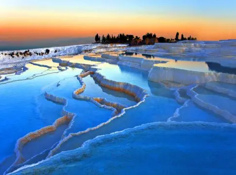 Situado en el valle del río Menderes en la provincia de Denizli, esta joya de la naturaleza atrae a miles de visitantes cada año, deseosos de contemplar su esplendor y sumergirse en sus piscinas termales de aguas cálidas.