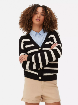 Otra forma de combinar el Cárdigan De Corte Boyfriend De Punto A Rayas de Primark es con una falda midi o lápiz. Esta combinación es perfecta para un look más sofisticado o elegante. Ahora bien, también se puede combinar el cárdigan con una camiseta o un vestido. Esta combinación es perfecta para un look más casual o informal.