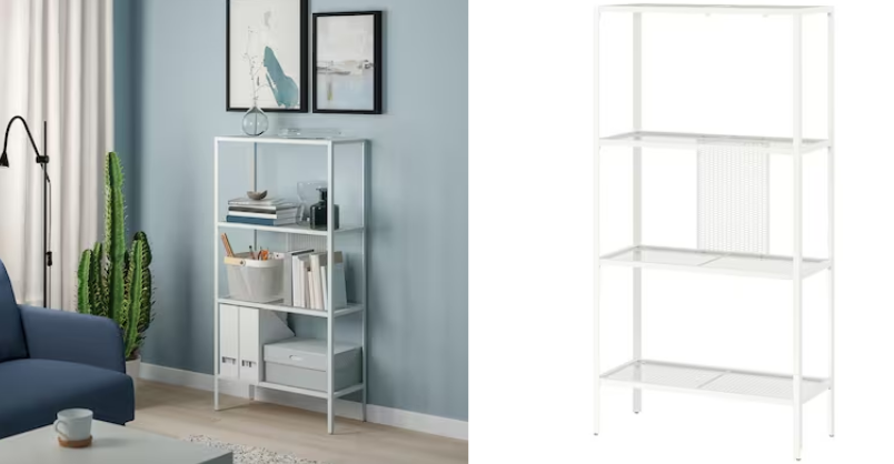 La estantería BAGGEBO de Ikea, es una opción versátil y asequible para almacenar libros, adornos y otros objetos. Está fabricada en metal y tiene un acabado blanco brillante que la hace fácil de limpiar y mantener. Los estantes de rejilla permiten que el aire circule libremente, lo que ayuda a prevenir el moho y el crecimiento de hongos.