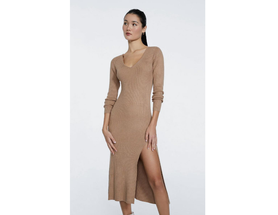 Está confeccionado en 50% acrílico, 25% poliéster y 25% lana. Si buscas un vestido cómodo, elegante y versátil, el vestido midi de punto con cuello de pico de Stradivarius es una excelente opción. Lo llevas por tan solo 25,99 €.