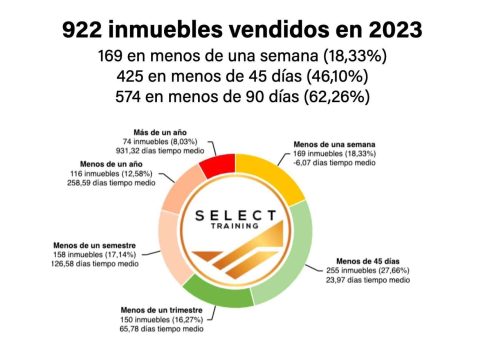 Uno de los datos más significativos que destacaron en la convención fue el importante número de inmuebles vendidos en 2023. En total, se concretaron 922 compraventas de propiedades, lo que demuestra el sólido desempeño y la gran presencia de Select Training en el mercado. Además, se resaltó que, de estos 922 inmuebles, 169 se vendieron en menos de una semana, lo que representa el 18,33 % de las transacciones.