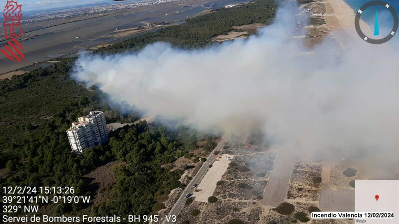 El fuego, declarado sobre las 14.50 horas de este lunes, obligó a establecer la situación 1 del Plan Especial de Incendios Forestales (PEIF) y a cortar el tráfico en ambas direcciones --desde el Perellonet y El Saler-- en la carretera CV-500 para evitar desplazamientos la zona.