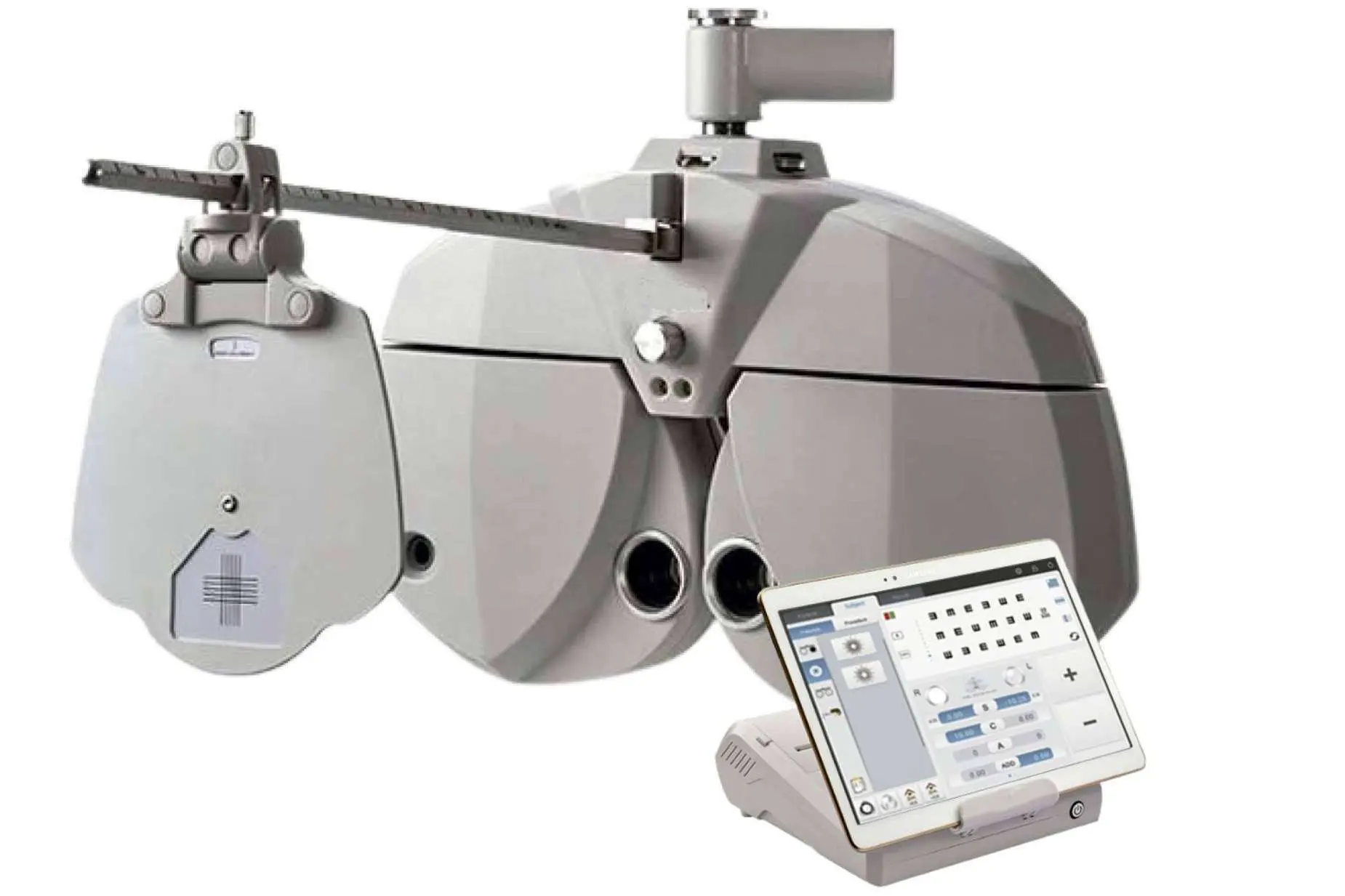Este equipo fabricado por YEASN, es uno de los que pone a disposición Gx2. El dispositivo combina innovación técnica y diseño moderno y es controlado a través de una tablet, preferentemente una Samsung, que se conecta a través de una red wifi propia generada por el dispositivo. Además, el Foróptero admite el control multitáctil y gestual y es una herramienta de aprendizaje rápido.