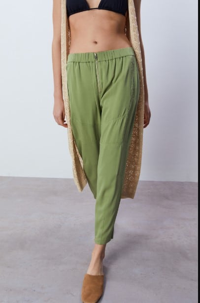 Estos pantalones son todo lo que estabas buscando. Con cremallera en la parte delantera y elástico en la cintura, puedes ponértelos, no importa si vas a salir o simplemente a hacer recados, te quedarán perfectos. Disponible en color caqui. El precio de venta es de 29,99 euros.