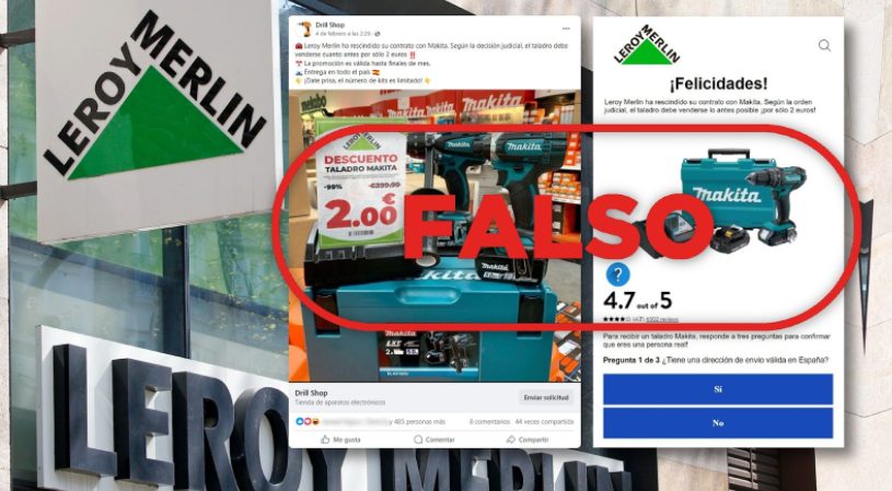 Hace unos días, los usuarios de Facebook, se percataron de una tentadora oferta de Leroy Merlin que, a todas luces, parecía irresistible, pues, por tan solo 2 euros, podías llevarte a casa un taladro de buena marca que se vendía en la famosa cadena. “Leroy Merlin ha rescindido su contrato con Makita. Según la decisión judicial, el taladro debe venderse cuanto antes por solo 2 euros” Por supuesto, la publicación es acompañada de un enlace para proceder con la compra del producto.