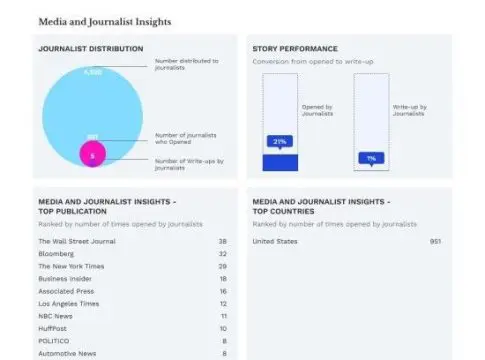 El exclusivo Media and Journalist Insights de Media OutReach Newswire también permite a los clientes analizar las interacciones de los periodistas con sus comunicados de prensa y les proporciona datos detallados de distribución y tasas de lectura de correos electrónicos por cada publicación. Esto proporciona a los clientes una potente herramienta para la planificación estratégica de la comunicación y la toma de decisiones informada con datos integrales de relaciones públicas. Estos prácticos informes posteriores a la publicación permiten a los profesionales de la comunicación generar informes de inteligencia en inglés y chino simplificado para el cuerpo directivo.