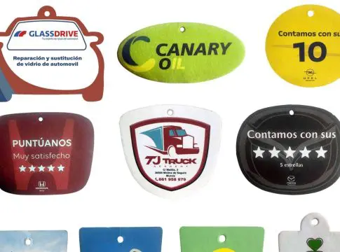 El ambientador coche personalizado de celulosa, por su parte, sigue siendo uno de los más usados. Contiene 3 gramos de esencia pura que alcanza a durar hasta 15 días. La troquelización del mensaje se hace por ambos lados y a todo color, con la posibilidad de trabajar con cualquier diseño publicitario. Es uno de los más económicos, lo que permite tener una gran cantidad de ellos a cambio de una pequeña inversión.