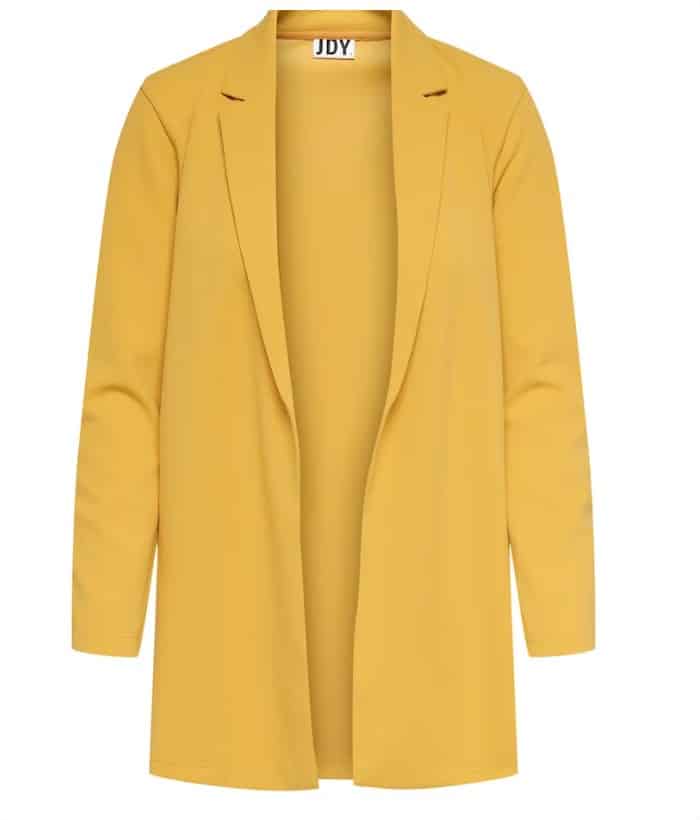 Un traje amarillo puede ser complicado de combinar, pero una falda negra siempre será una elección acertada. Completa el look con zapatos de tacón alto del mismo color que la chaqueta. Añade alpargatas o sandalias para terminar el estilo. Si te interesa este traje de mujer en El Corte Inglés, aquí lo encontrarás.