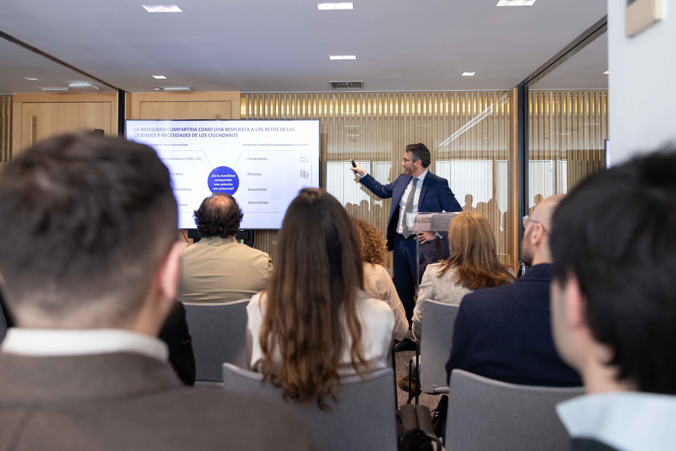 La regulación de la movilidad compartida, especialmente en lo que respecta al ride-hailing, requiere aún de distintos desarrollos regulatorios a nivel autonómico. Por ello, la presentación de este informe incluyó un debate en el que se congregaron diversos agentes de cambio y representantes de gobiernos autonómicos en el ámbito de la movilidad y el transporte, entre ellos Luis Miguel Torres Hernández, director general de Transporte y Movilidad de la Comunidad de Madrid; María Lorena del Valle Alonzo, directora general de la Comunidad Autónoma de las Islas Baleares (CAIB); Miguel Ángel Anía, director general de Transportes de Aragón; y Daniel Fernández, subdirector general de Ordenación del Transporte y Desarrollo Sectorial de la Generalitat de Cataluña.