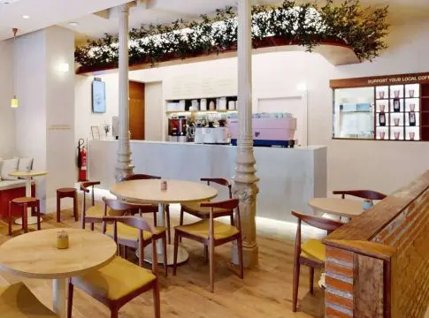 Su espectacular fachada de flores, algo característico de todos los restaurantes BRUNCHIT, deja ya intuir su espléndido interior. Con un interiorismo inspirado en la naturaleza y la sencillez, BRUNCHIT Las Letras ofrece un ambiente acogedor y relajante que invita a los clientes a disfrutar de la belleza de la simplicidad. El estudio Labaa Design, partner de interiorismo de BRUNCHIT, firma la obra. Desde dicho estudio explican que con la utilización de materiales naturales –como maderas macizas teñidas en color teca–, la iluminación cálida y la vegetación mediterránea han querido crear una atmósfera serena y reconfortante que evoca la tranquilidad de un oasis natural.