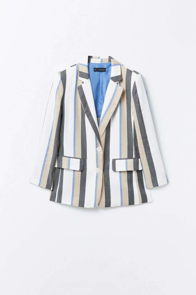 En el mundo del lujo silencioso, las rayas también tienen cabida, como lo demuestra la americana de rayas de Sfera. Con una combinación de colores ideal, esta prenda añade un toque de originalidad a cualquier conjunto, manteniendo la elegancia característica de la marca.