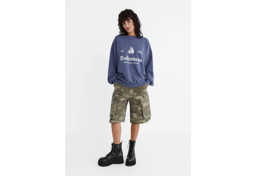 El estampado de las Bahamas presenta una imagen de una playa con palmeras y un océano azul. La sudadera oversize con estampado de Bahamas es una excelente manera de mostrar tu amor por el océano y también es un gran regalo para cualquier persona que ama la playa o los viajes tropicales. La encuentras desde la talla XS hasta la XL y su precio es de 22,99 euros.
