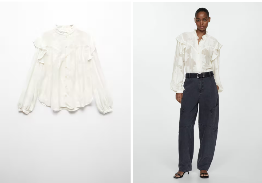 Si amas el estilo de vestir romántico que se ha puesto de moda este 2024 con la tendencia coquette, en Mango conseguirás la camisa perfecta para llevar por todo lo alto esa tendencia que, con tanto estilo, ha lucido Rocío Osorio.