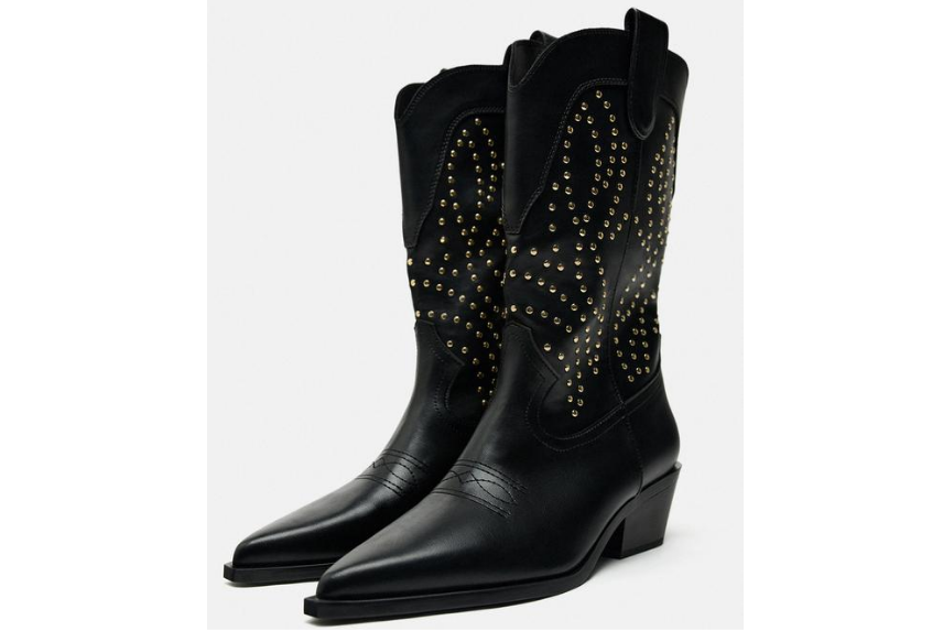 Las botas cowboy con tachas de Zara son una declaración de moda atrevida y elegante. Se pueden usar con jeans y una camiseta para un look casual, o con un vestido para un look más elegante.