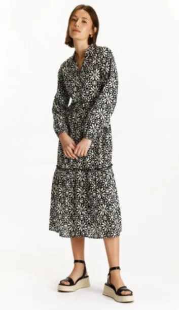 El diseño de este vestido puede agregar un toque de feminidad y elegancia a tu apariencia, pues, el estampado de flores blancas sobre el fondo negro puede ser llamativo y atractivo. Al estar confeccionado en algodón, el vestido camisero manga larga ofrece comodidad durante la primavera. El algodón es un material transpirable y suave al tacto, lo que lo hace ideal para climas más cálidos. Su precio es de 19,99 €.