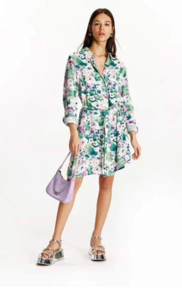 El estampado floral en acuarela aporta un toque de romanticismo y feminidad a la prenda, mientras que los colores vibrantes evocan la alegría y la vitalidad de la primavera. Además, el corte camisero es clásico y atemporal, y te permite adaptarlo a diferentes ocasiones.
