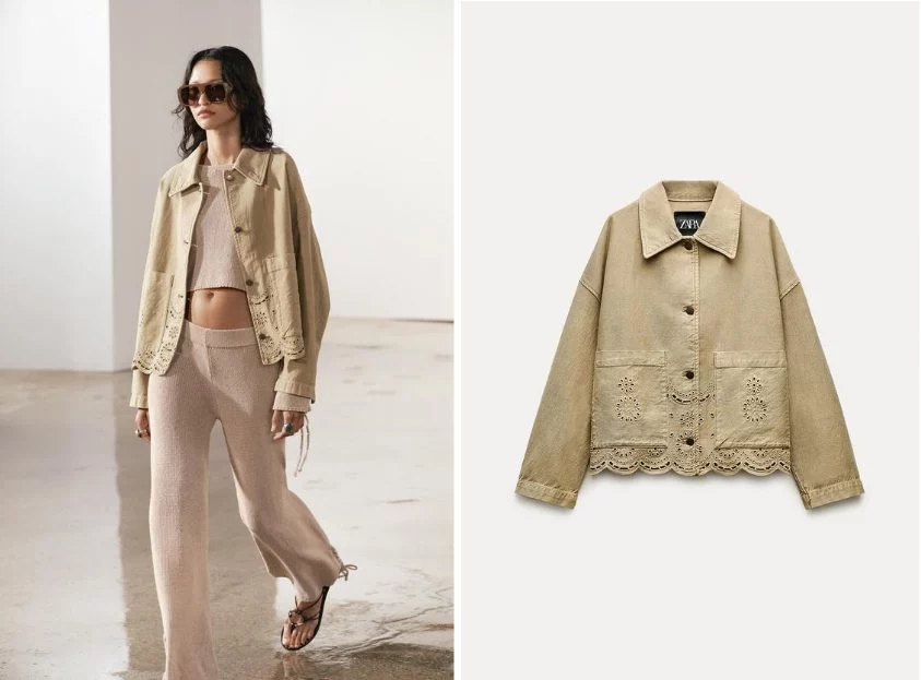 La sobrecamisa con bordados de la ZW Collection de Zara es una prenda que destaca por su delicadeza y feminidad, perfecta para la temporada de primavera. Los bordados añaden un toque especial y único a la prenda, agregando detalles y texturas que resaltan su belleza.
