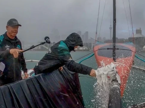 Mientras que, en el caso de los 'kiwis' e italianos sólo se ha podido apreciar una pequeña parte de su potencial, ya que sus 'foils 'y sus brazos aún son un misterio, los suizos han atraído todas las miradas con sus hidroalas a medida, que influirán en su rendimiento de manera decisiva y que les ha permitido despegar con una brisa de entre 6,5 y 7,5 nudos, lo que supone una impresionante mejora de rendimiento con respecto a los barcos de la primera generación. INEOS Britannia desveló su barco, pero mantuvo sus nuevos foils en secreto hasta la botadura.