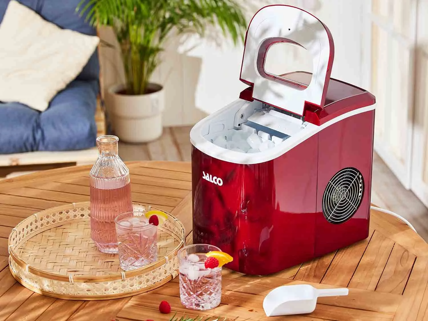 Con su carcasa compacta y elegante, disponible en un llamativo color rojo, esta máquina no solo cautiva por su atractivo visual, sino que también demuestra ser increíblemente funcional. Su pantalla LED intuitiva y sus controles sencillos permiten ajustar la producción de hielo según las necesidades del momento, mientras que su sistema de alerta avisa cuando el nivel de agua es insuficiente o cuando la cesta de cubitos está llena.