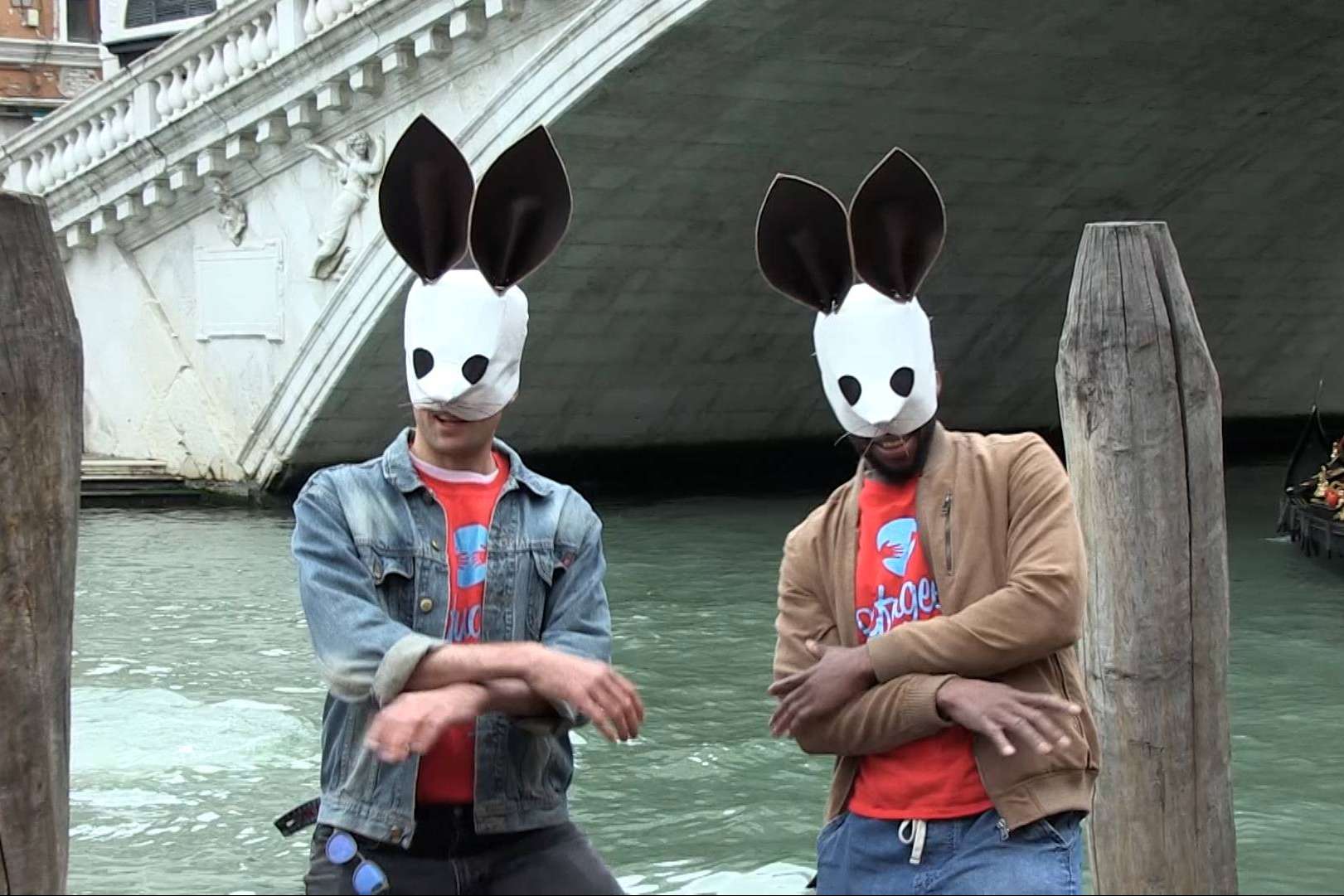 Luego, la mañana del viernes 19 de abril FOW continuó las actividades performáticas con una acción de guerrilla en el puente de Rialto, mostrando un banner gigante con la imagen de la campaña de “Journey of Labels”, con la frase en inglés “EXPAT, INMIGRANT, REFUGEE?”; para recordarnos que, en esencia, todos somos extraños en tierras extranjeras.