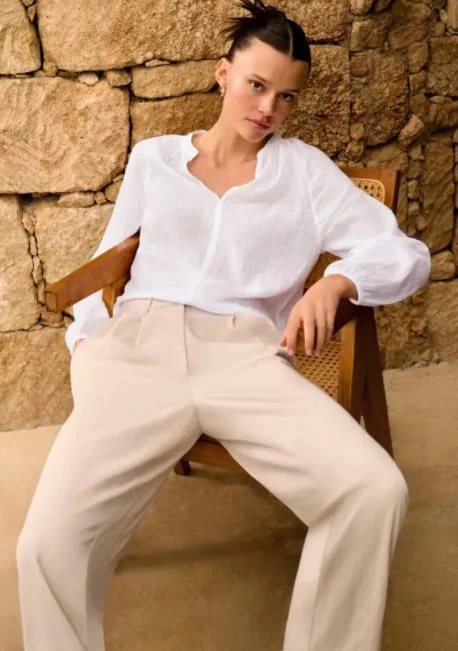 Un pantalón de traje de lino en color camel es una alternativa muy elegante para el verano. El lino es un tejido ligero y transpirable que es perfecto para las altas temperaturas, y en este color, resulta ser aún más fresco; además, puedes combinarlo de diferentes formas para crear looks sofisticados y versátiles.