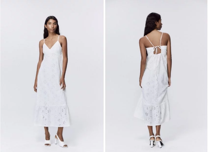 Un vestido de tirantes calado en color blanco, como el de Sfera que encuentras en El Corte Inglés, es una opción perfecta para el verano, ya que combina delicadeza y frescura. Este tipo de vestido es ideal para lucir en días calurosos y proporciona una sensación de comodidad y ligereza.