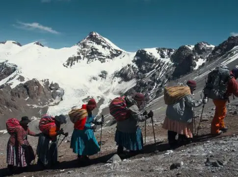 Así, el documental --que se estrenó en 2019-- narra la expedición de Dora, Liita, Lidia, Cecilia y Elena al monte Aconcagua de Argentina (6.962 metros): cinco mujeres indígenas bolivianas, las 'Cholitas escaladoras', que se proponen escalar la montaña más alta de América.