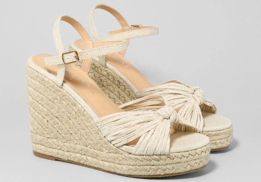 Estas alpargatas están confeccionadas en poliuretano y poliéster y son sencillamente preciosas, perfectas para combinar con faldas, vestidos, pantalones, bermudas o monos. El precio de estas sandalias es de 35,99 €.