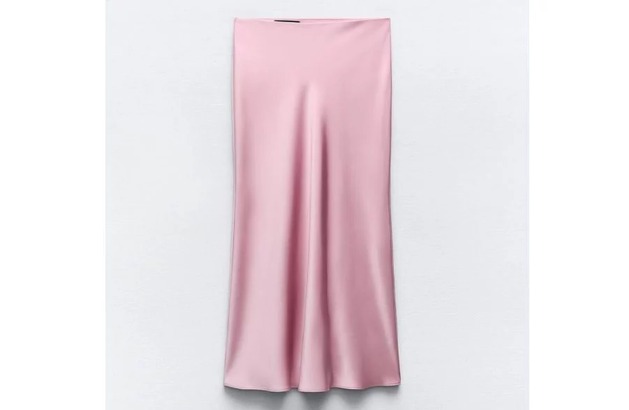 Una falda midi satinada en color rosa es perfecta para lucir el estilo coquette en verano; y esta que encuentras disponible en Zara, puedes combinarla con diferentes prendas y accesorios para crear looks elegantes y femeninos. Aquí tienes algunas ideas de cómo lucir esta falda: