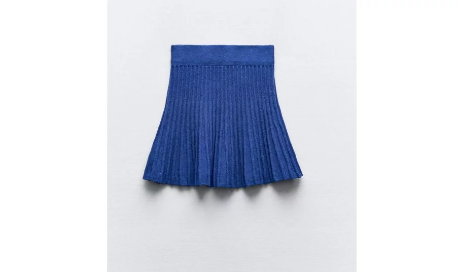 9Falda de punto con pliegues en vibrante color azul, de Zara
