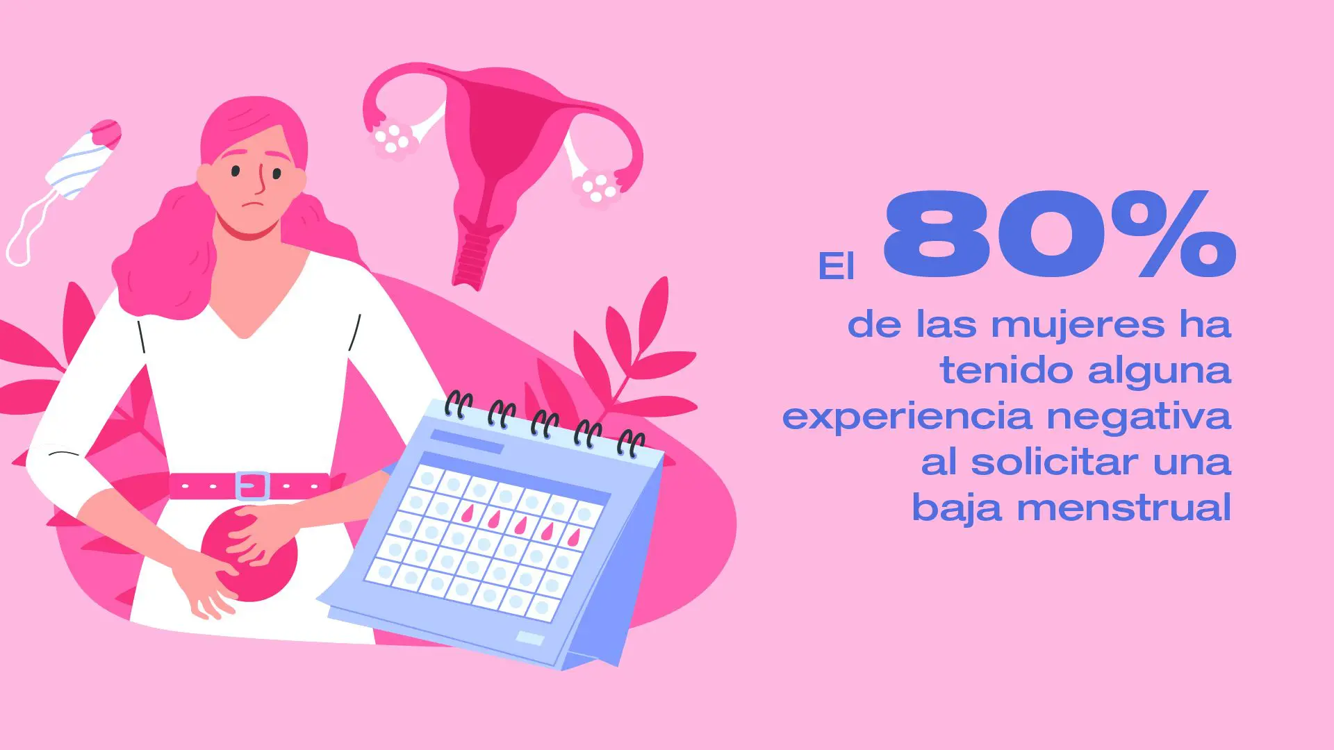 Durante la menstruación, las mujeres pueden padecer migrañas (48%), dolor articular o muscular, debilidad y fatiga (58%), entre otros síntomas. Estos síntomas se presentan en casi 3 de cada 10 mujeres todos los meses y un 68% de las mujeres afirma haber sentido dolores menstruales incapacitantes, pero solo un tercio de ellas (33%) ha solicitado la baja menstrual alguna vez. Entonces, ¿por qué las mujeres no solicitan la baja menstrual a pesar de que la puedan necesitar?