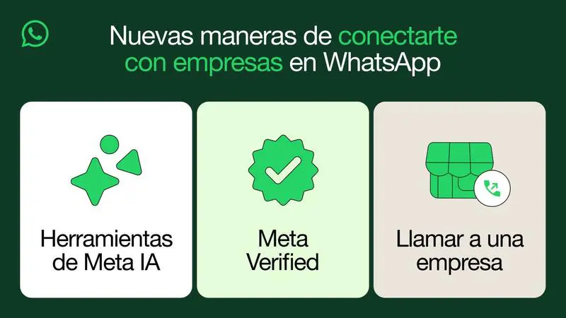 Meta ha implementado nuevas funciones impulsadas por Inteligencia Artificial (IA) en WhatsApp Business que permiten a los usuarios crear anuncios para Facebook e Instagram y ofrecer asistencia relacionada con productos y servicios a los clientes en los chats. Además, se ha anunciado la llegada de Meta Verified para las cuentas de empresas.