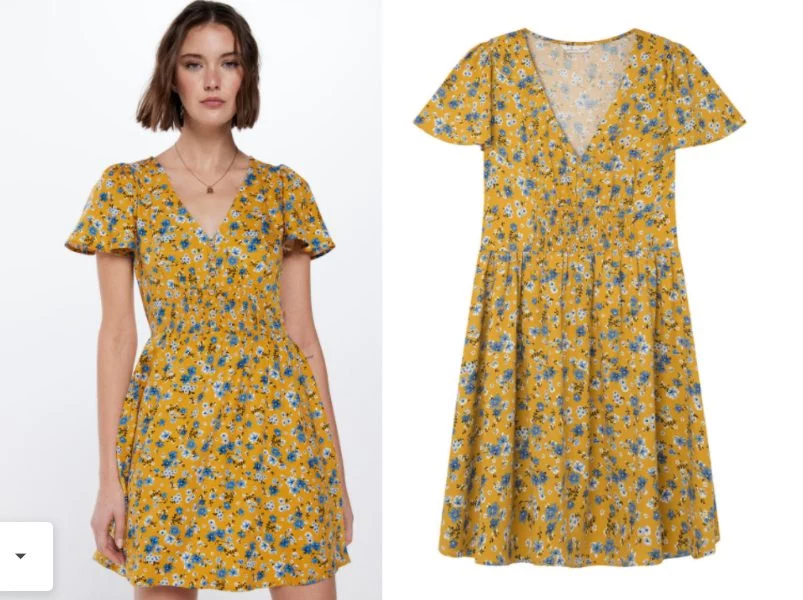 Vestido corto, ideal para lucir tus piernas y disfrutar de la libertad de movimiento, corte evasé o ligeramente ajustado, mangas cortas, ideales para los días cálidos y para resaltar tus brazos, escote en pico, que te hará lucir el cuello, ideal para usar collares vistosos; el precio es de 17,99 euros.