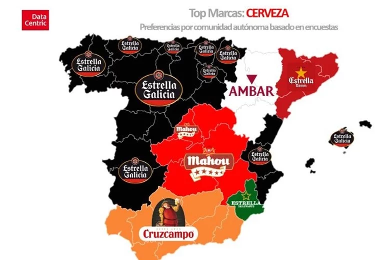 Eso sí, hay que destacar también que las marcas que lideran en ventas no son siempre las que ganan en preferencia. "Quizás nuestras aspiraciones no siempre coinciden con la realidad. Estrella Galicia, cuyo grupo cervecero solo alcanza el cuarto puesto nacional en ventas, va ganando la batalla en cuanto a cerveza favorita en varios territorios del oeste e incluso del este del país. La mayor resistencia se la ofrece Mahou (...) líder de ventas a nivel nacional. aseguran. Es ahí donde tenemos que mirar un poco más abajo a la gallega con Estrella Galicia, y Aragón, con Ambar, territorios donde las marcas locales triunfan.