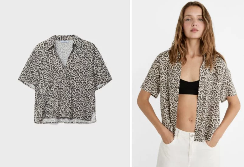 La Camisa manga corta leopardo con lino Stradivarius es una prenda muy versátil que se puede combinar con diferentes tipos de ropa y accesorios para crear una gran variedad de looks, es perfecta para cualquier ocasión, desde un día de playa hasta una noche de fiesta.