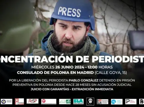 Pablo González, un periodista español con doble nacionalidad, ha sido detenido en Polonia hace 28 meses bajo la acusación vaga de "espionaje". La Federación de Asociaciones de Periodistas de España (FAPE) y otras entidades convocaron una concentración este miércoles 26 de junio frente al consulado de Polonia en Madrid para exigir "un juicio con garantías y la repatriación inmediata" del periodista.