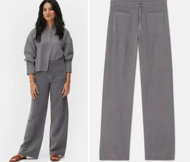 Los pantalones de pernera ancha de Paula Echevarría destacan por su corte fluido y favorecedor, que se adapta a todo tipo de figuras; su tiro alto alarga las piernas y estiliza la silueta, mientras que la pernera ancha aporta comodidad y movimiento.