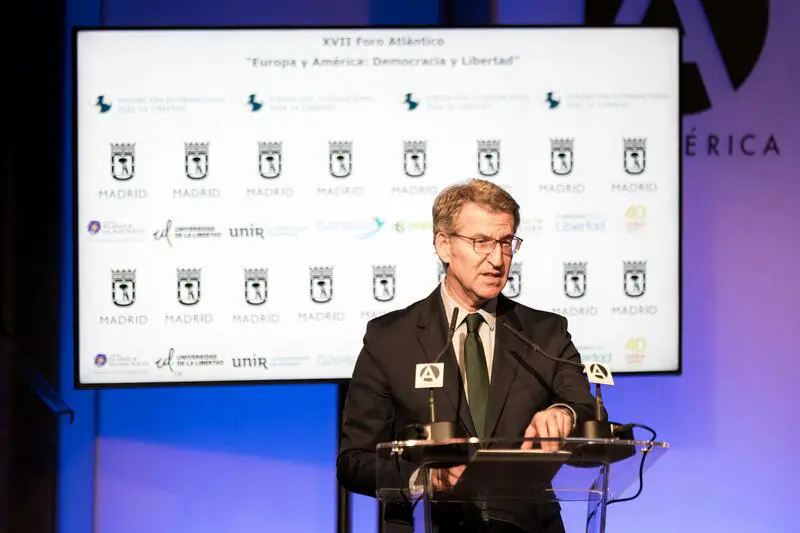 Más allá de España, Feijóo ha señalado que "ningún país está a salvo de sufrir retrocesos democráticos" y ha hecho hincapié en lo que ocurre en varios países de Iberoamérica, con especial mención a Venezuela, Cuba y Nicaragua. Según el líder del PP, estos regímenes "no solo empobrecen a sus ciudadanos, sino que además provocan una corrupción obscena" y se "apoyan en países como Rusia e Irán", cuyo objetivo "es desestabilizar las democracias".