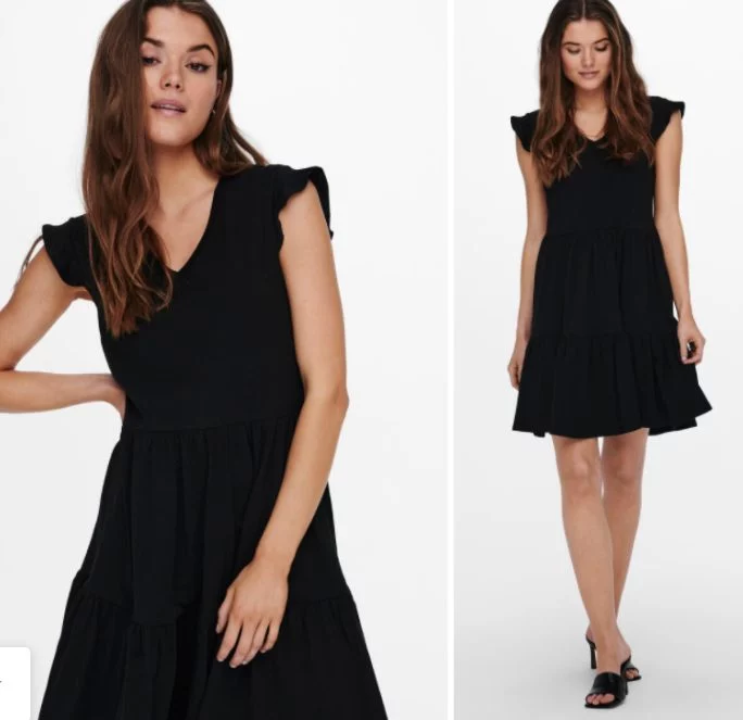Este vestido de manga corta te permitirá disfrutar de los días más calurosos con total frescura, su escote en forma de pico realza tu figura de manera favorecedora, mientras que los detalles de volantes en las mangas y el bajo del vestido le dan un toque romántico y coqueto que te hará sentir irresistible.
