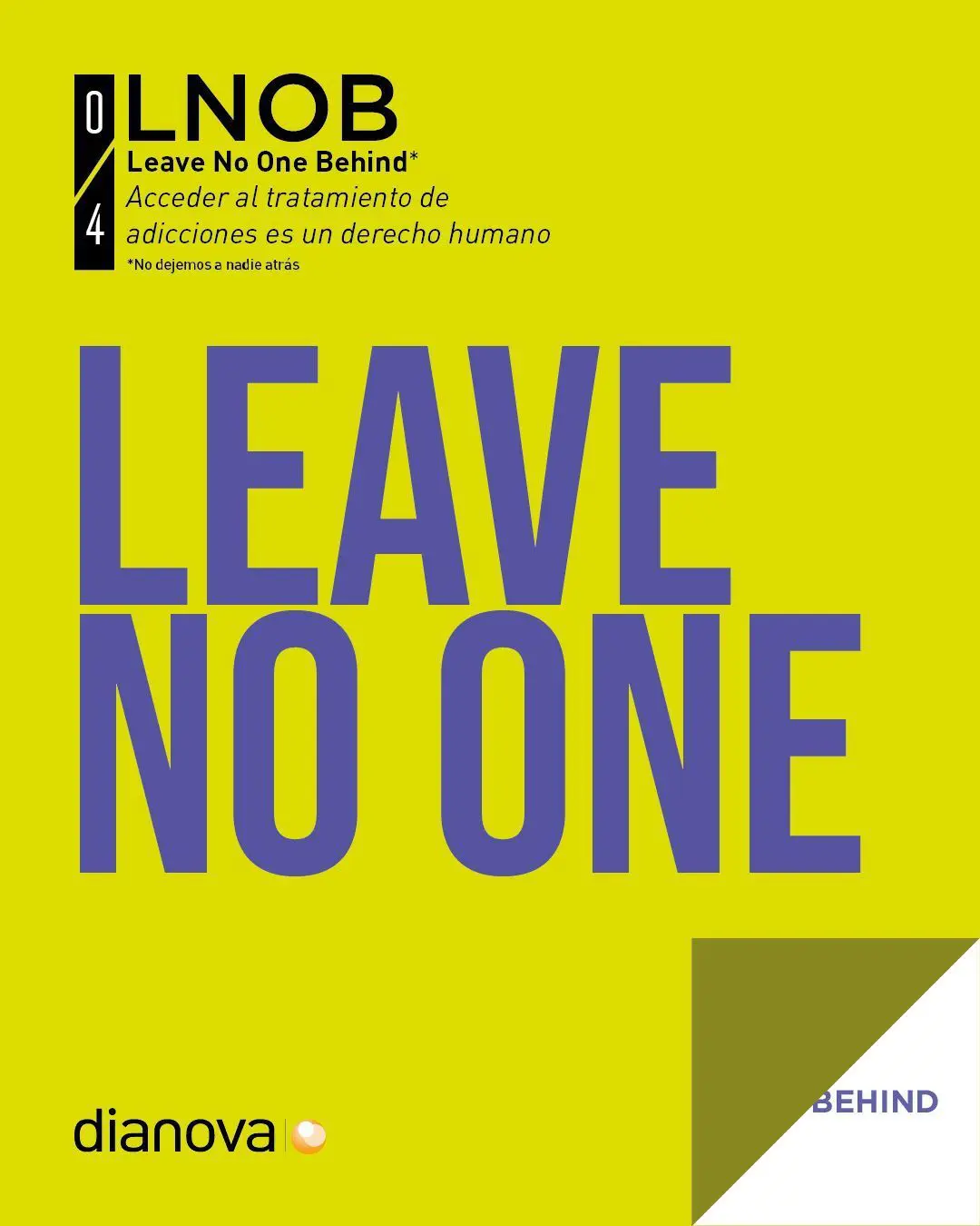 'Leave No One Behind - El acceso al tratamiento de las adicciones es un derecho humano: no dejemos a nadie atrás' - Con motivo del Día Mundial de la Lucha contra el Uso Indebido y el Tráfico Ilícito de Drogas, el 26 de junio, la organización Dianova lanza un mensaje claro e invita a reflexionar sobre las políticas de drogas tal y como se aplican hoy en día.