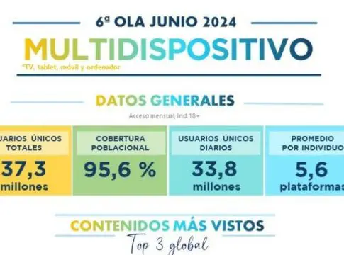 En el mes de junio de 2024, el 95,6% de la población española disfrutó de alguna plataforma de 'streaming' (OTT), accediendo en promedio a casi seis plataformas distintas, según revela el estudio de la 'Evolución del acceso a las diferentes OTTs en España' realizado por Barlovento Comunicación. Este estudio, que se desarrolla de forma continua a lo largo del año con publicaciones mensuales, se adentra en el panorama de las plataformas VOD en España, explorando las preferencias de contenido y los hábitos de los usuarios de estos servicios. Consta de 12.000 entrevistas distribuidas en doce olas a lo largo del año, habiendo llevado a cabo 1.010 encuestas entre el 24 y el 30 de junio para esta investigación.