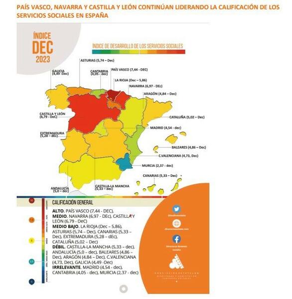 En los últimos años, la situación de los Servicios Sociales en España ha sido motivo de creciente preocupación. La Asociación de Directores y Gerentes de Servicios Sociales ha presentado recientemente el Índice DEC 2023, que pone de manifiesto las importantes desigualdades territoriales existentes en la provisión de estos servicios a lo largo y ancho del país.