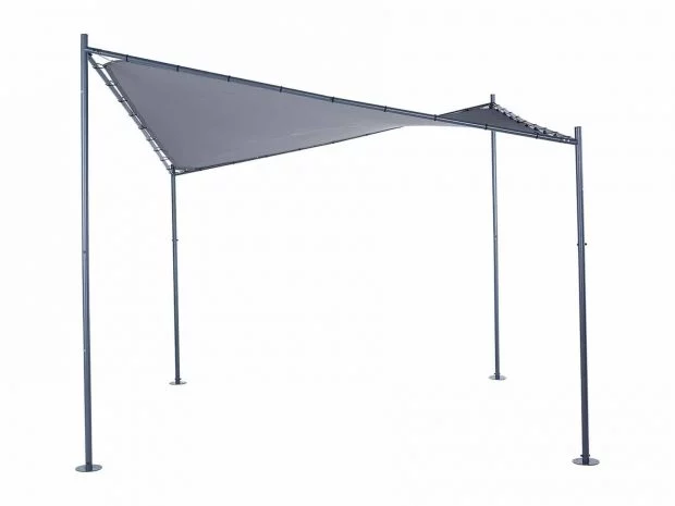 La estructura está fabricada con acero recubierto de polvo, lo que garantiza su durabilidad y resistencia a la intemperie. La cubierta, hecha de poliéster de alta calidad, ofrece una excelente protección contra los rayos UV, permitiendo disfrutar del aire libre sin preocuparse por los dañinos efectos del sol.